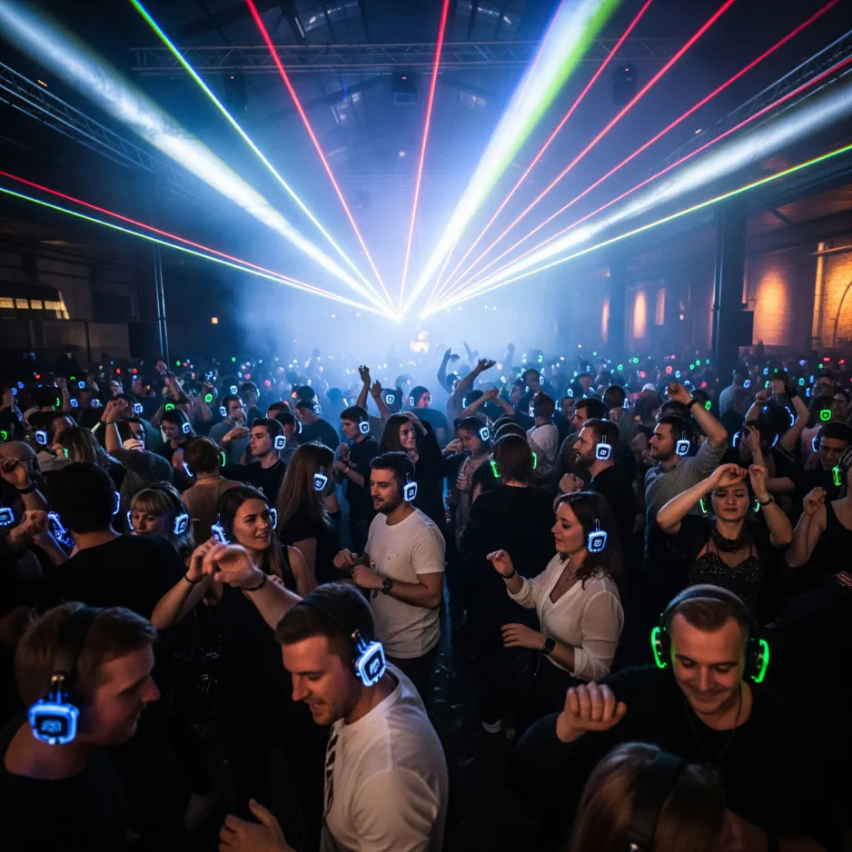 Planning an event? Bring the Silent Disco experience to you with our wireless headphone hire service. Perfect for parties, corporate events, and more with up to 3 music channels. We deliver, setup, and support you every step of the way.
